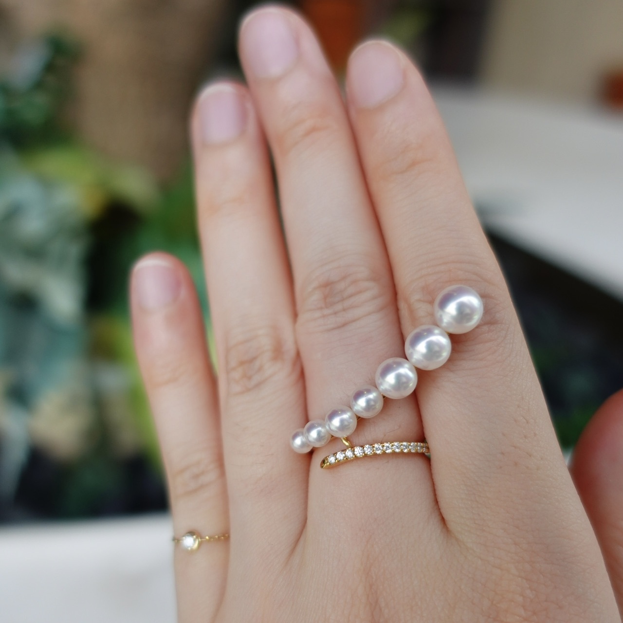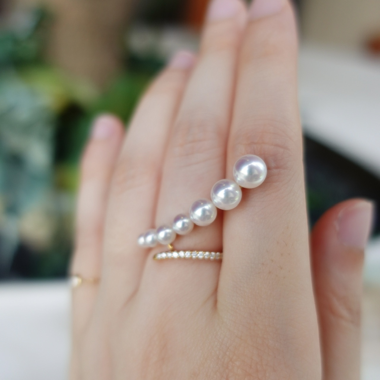 · 這種以不同大小的baby akoya珍珠做成的款式