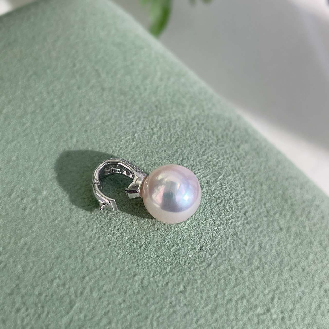 頂級鏡面系列 - 18K金天Akoya珍珠鑽石開口吊墜