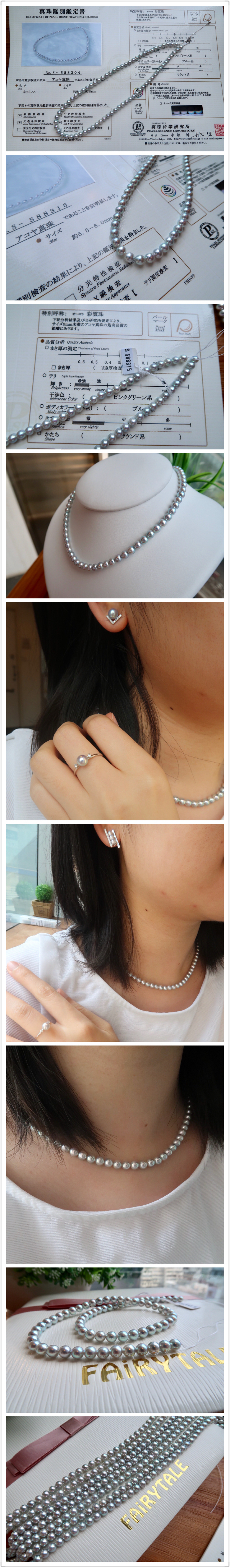 極光彩雲珠 - 5.5-6mm天然銀藍色日本Akoya珍珠鍊 (配真科研證書)