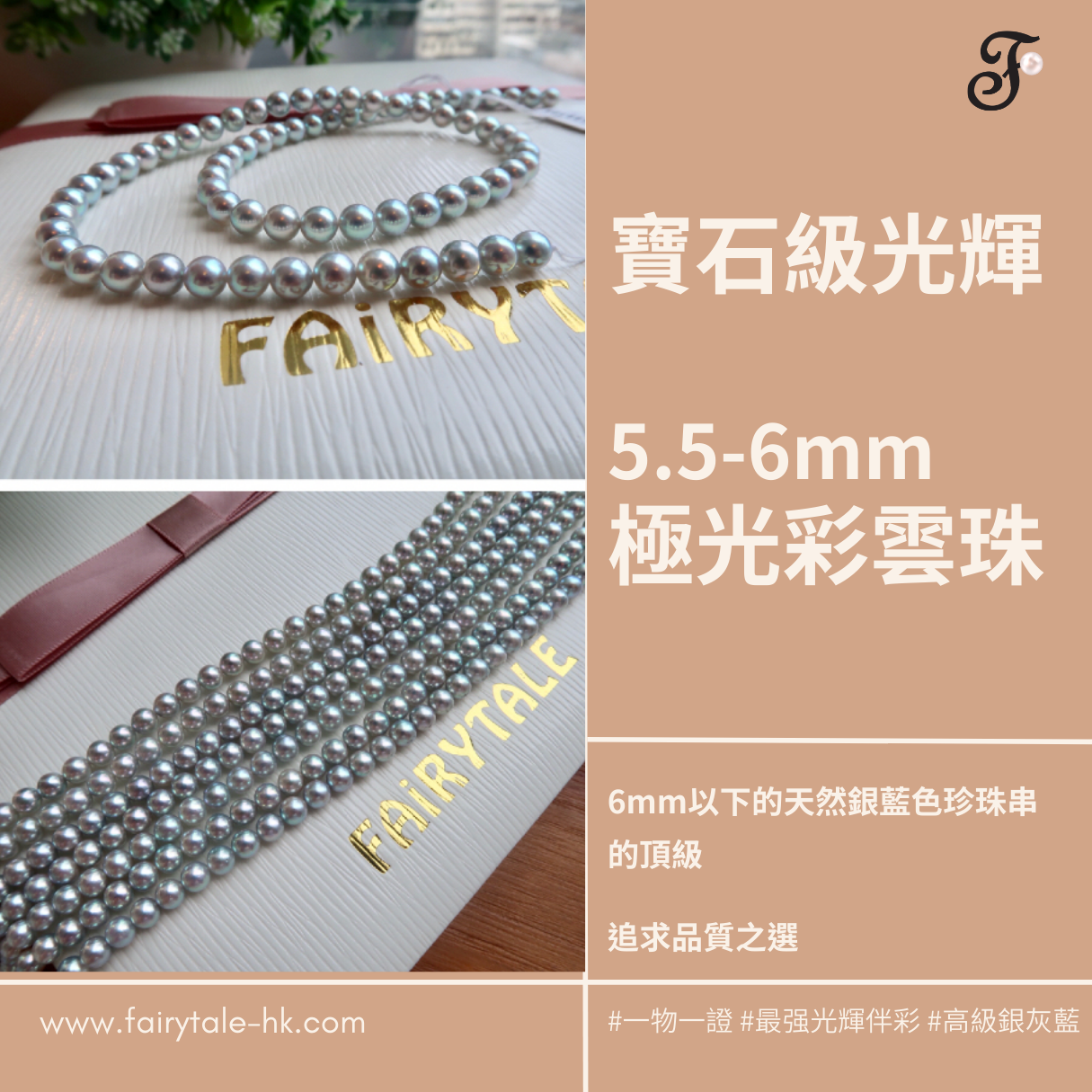Akoya的總產量里不到20%為藍灰色系,其中2%-3%可以成為真多麻,而6MM以下的珍珠更是罕有。如同粉色系akoya一樣6mm以下藍色系最高品質的珍珠擁有它獨有的專屬名稱——彩雲珠。
