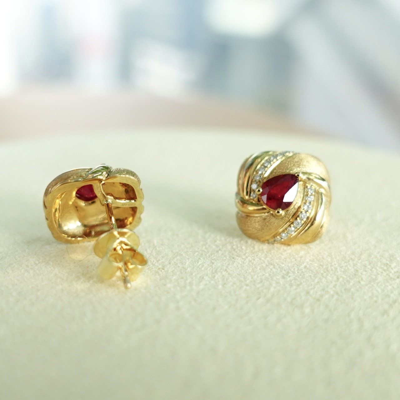 紅寶石-大概是最適合亞洲女性的寶石,她總能襯得我們面目姣好,容光煥發,造成耳釘掛在耳畔更顯氣息。✨💃🏻