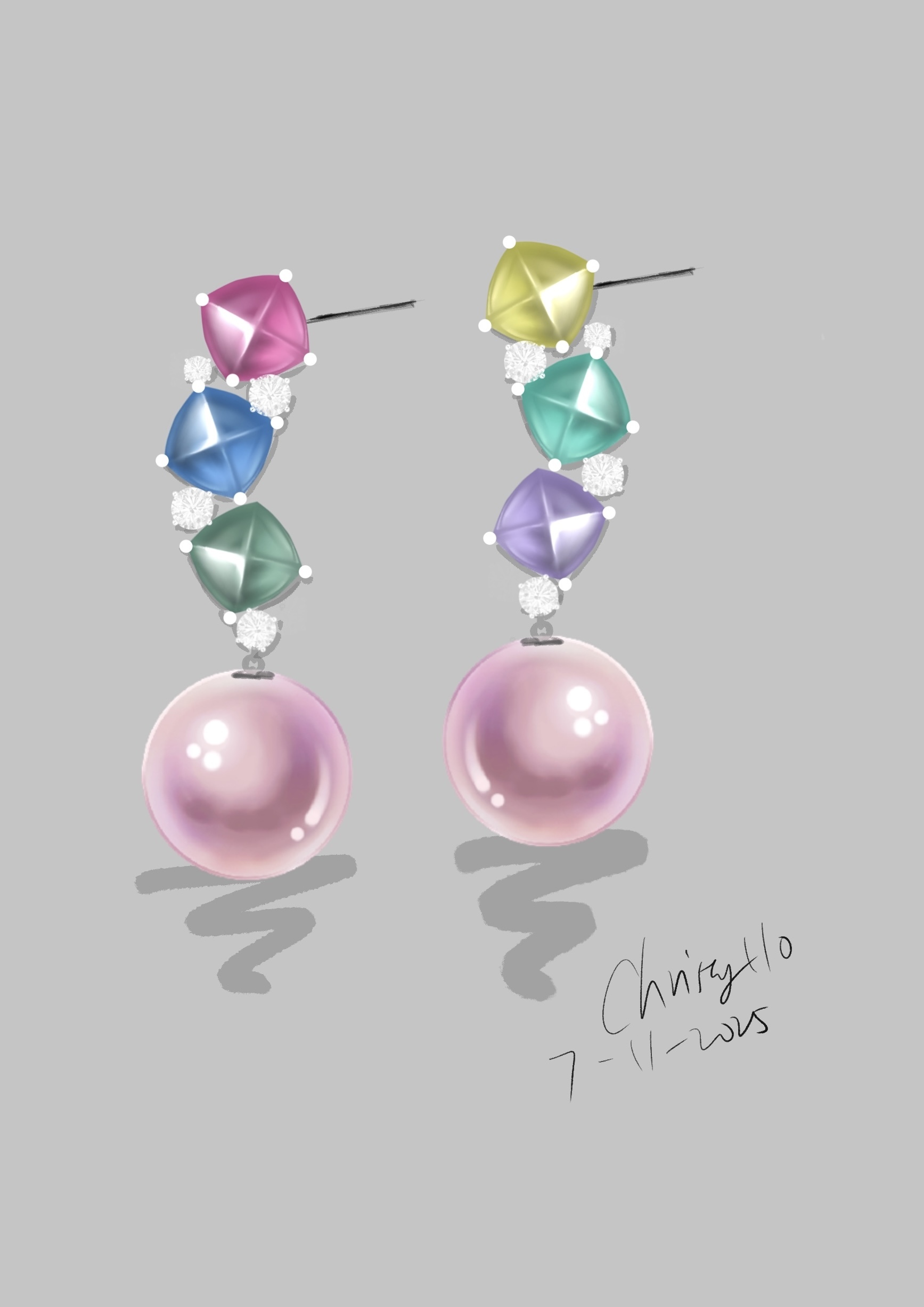 糖塔(Sugarloaf)這種切割方式捨棄了寶石的火彩,但凸顯了寶石晶體和其本身的顏色!彩色的sugarloaf藍寶石,像把彩虹熬成了糖漿,一滴滴凝固成一座會發光的水晶塔!下墜鏡面光澤的日本akoya,上耳瀅瀅透亮!