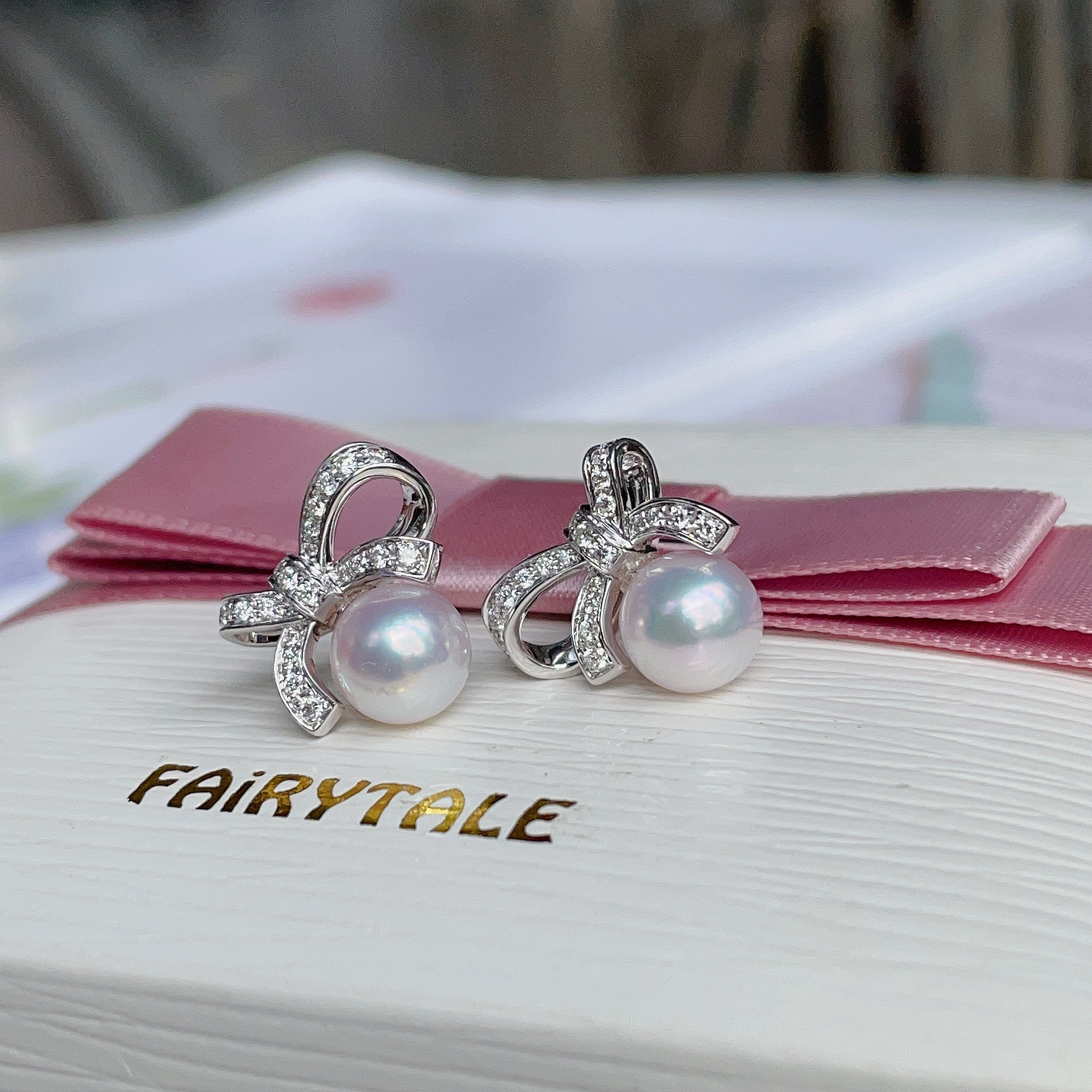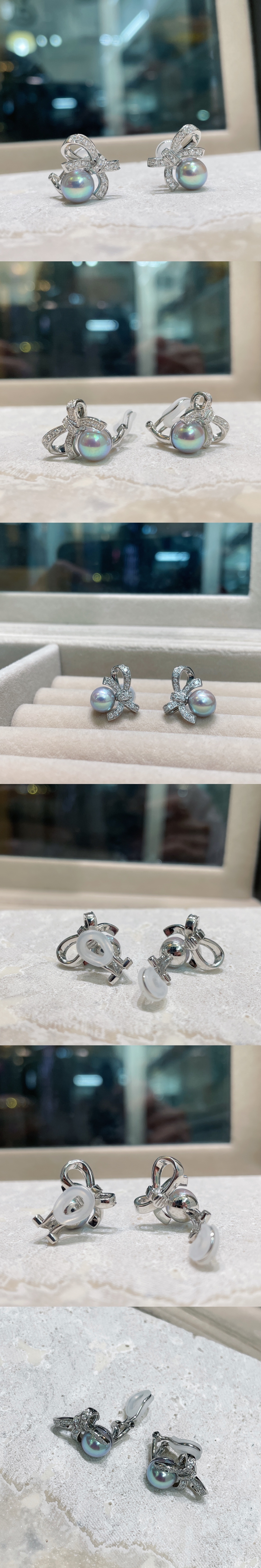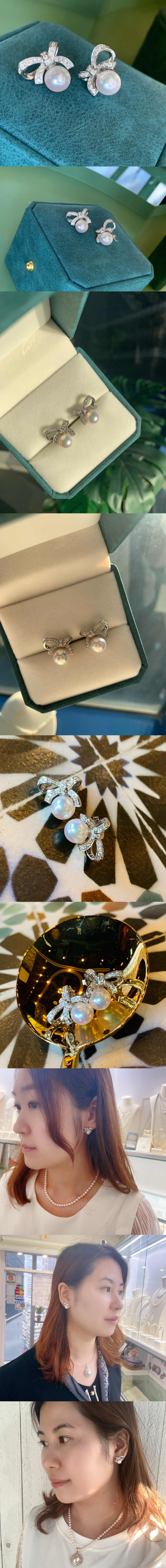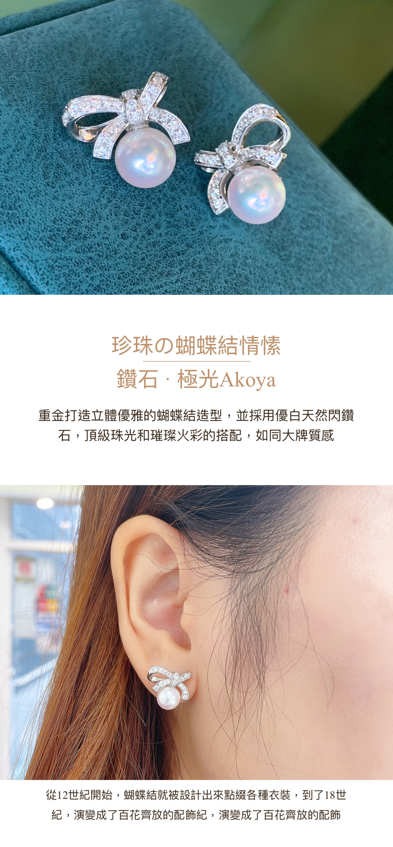 珍珠の蝴蝶結情愫 • 鏡面級Akoya鑽石耳釘