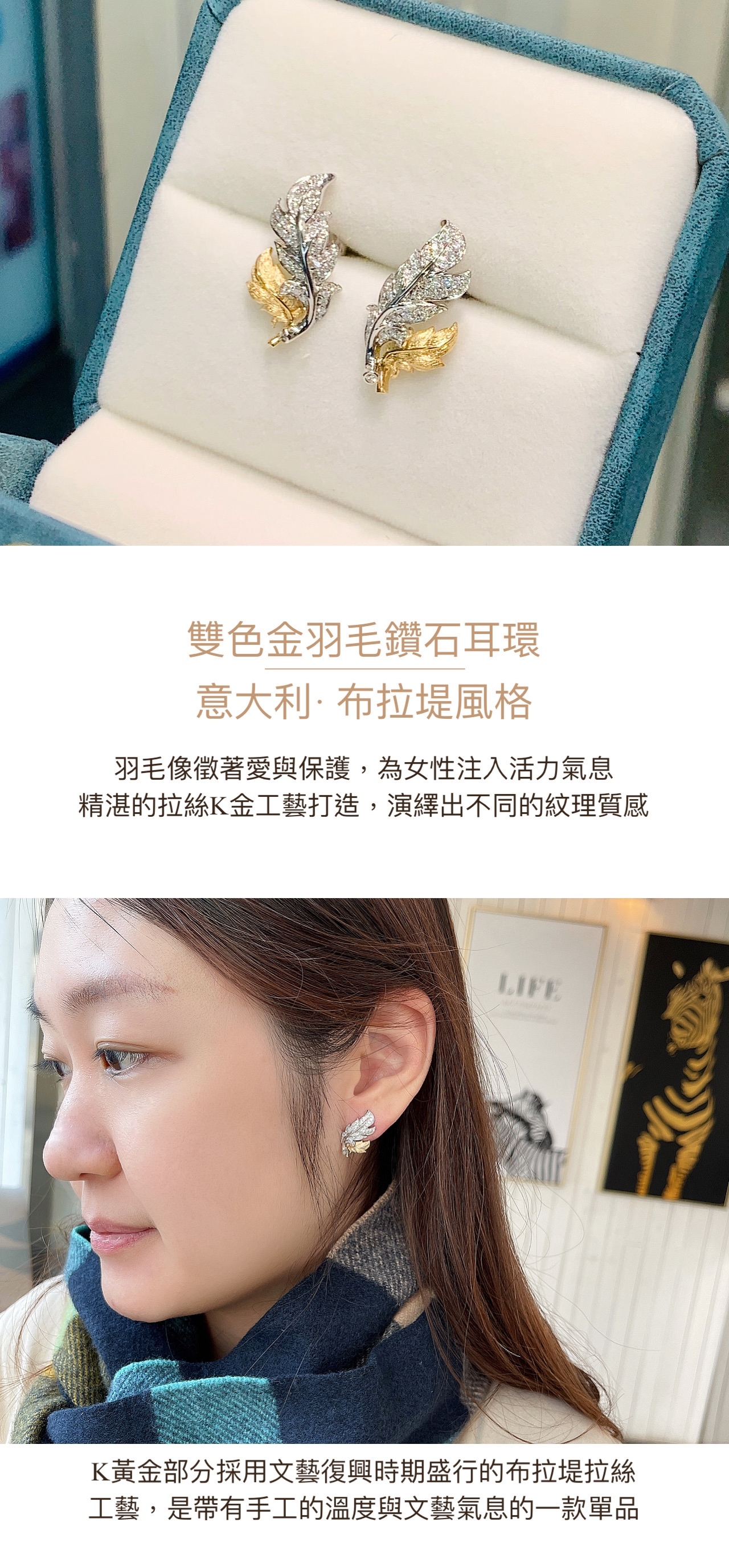 羽毛像徵著愛與保護,為女性注入活力氣息,以精湛的K金工藝打造成一雙活靈活現的羽毛,配以白鑽點綴,隨形而動,增添生氣之餘亦添上層次感,有提亮的效果,散發出耳畔靈動之美。