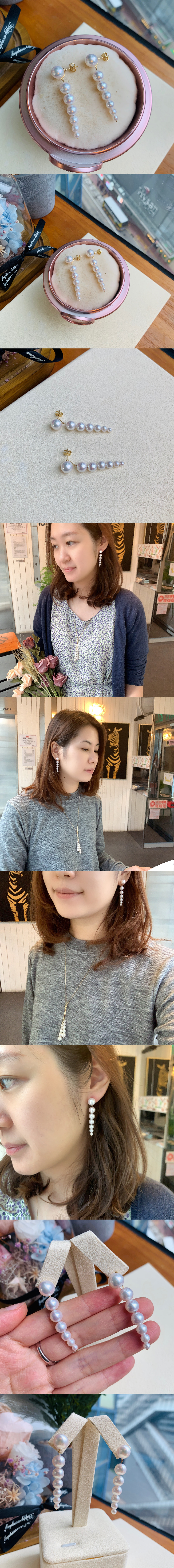 整串珍珠耳環由大至大小用18K金鍊條穿成,戴上耳環效果飄逸搖曳,非常能修飾臉型,能讓你瞬間變得溫柔的一款耳環。