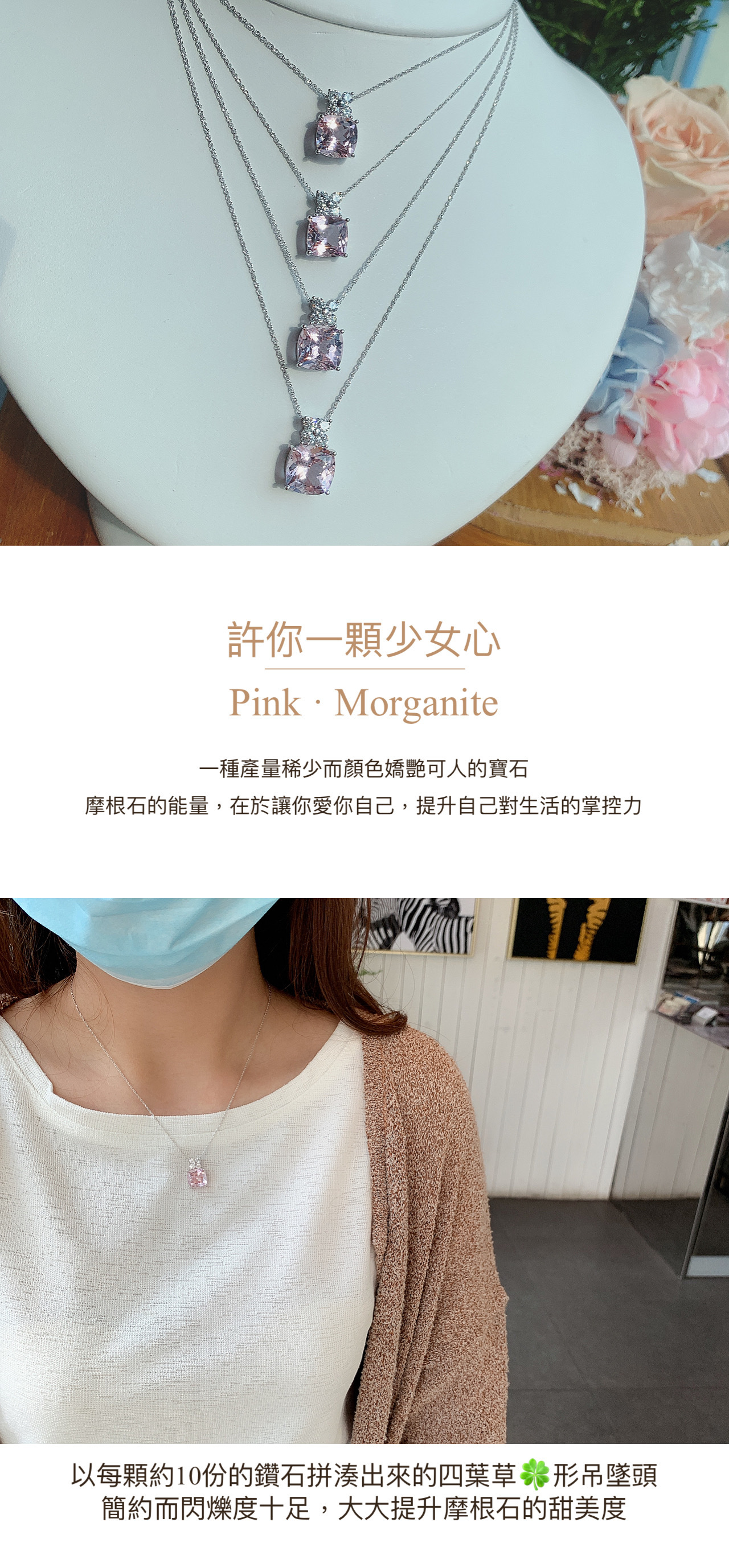 摩根石採用枕形切割(Cushion cut),台面底部亭面的厚道增加,讓寶石的顏色更加飽滿,明亮,多個刻面讓寶石更加閃耀,另外枕形切割對原石的損耗也比其他切割少很多,很大程度保留原石的重。