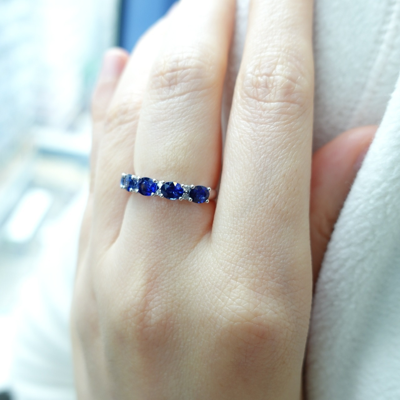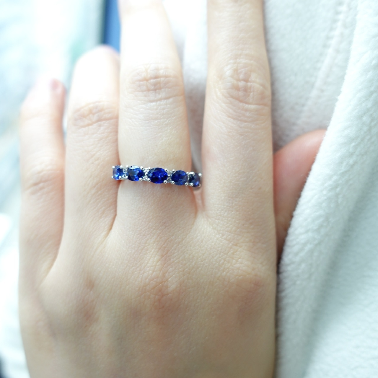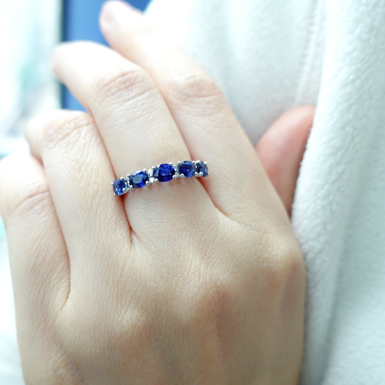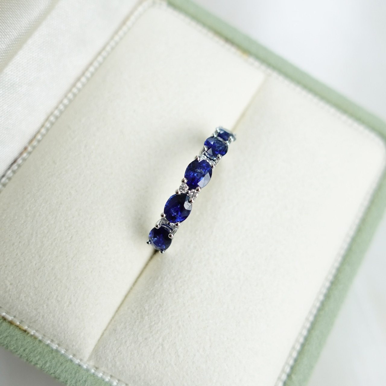 18K白金藍寶石鑽石排戒-橢圓形
