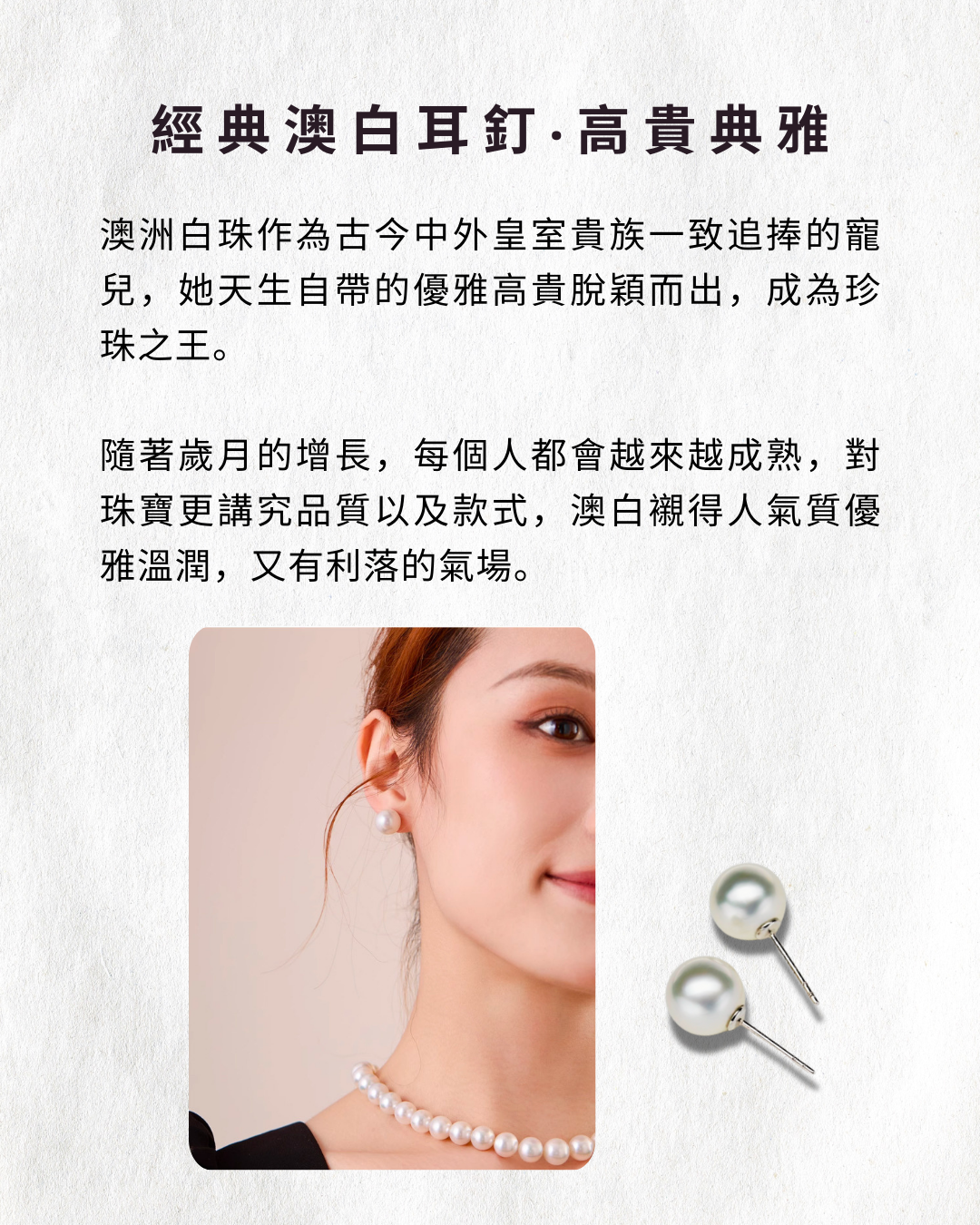 18K金澳白珍珠鑽石耳釘 (10mm)