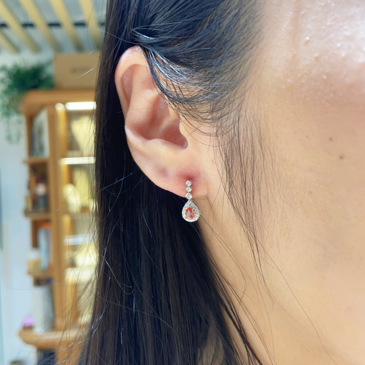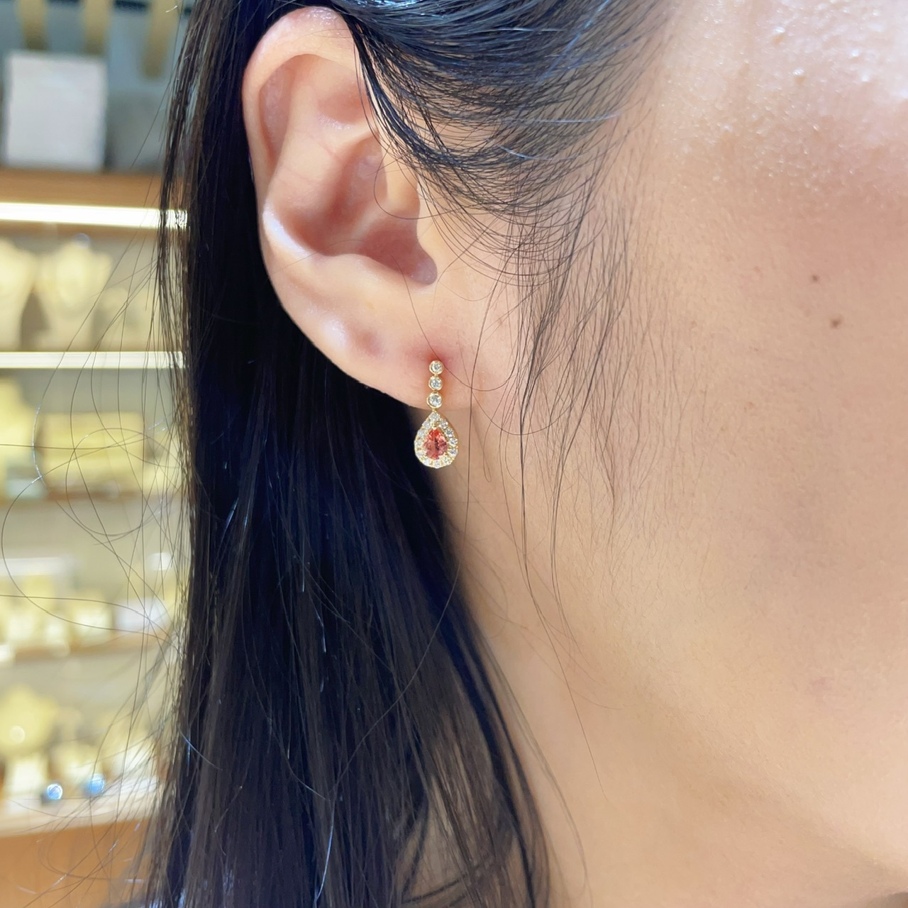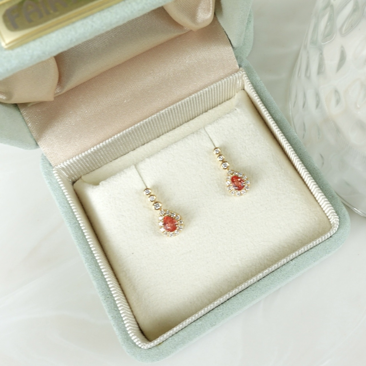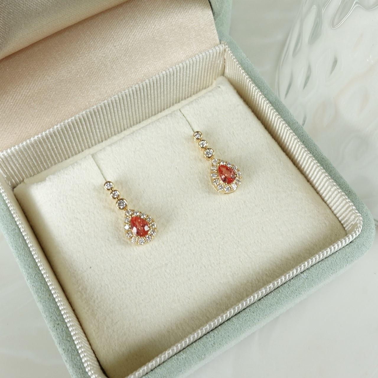 18K金Padparadscha鑽石復古耳釘 - 日落色