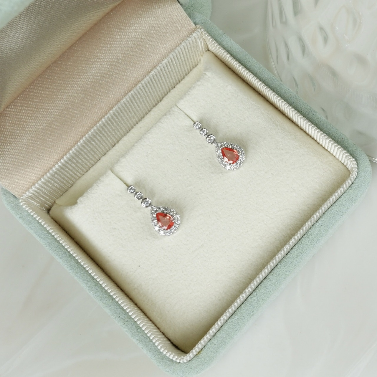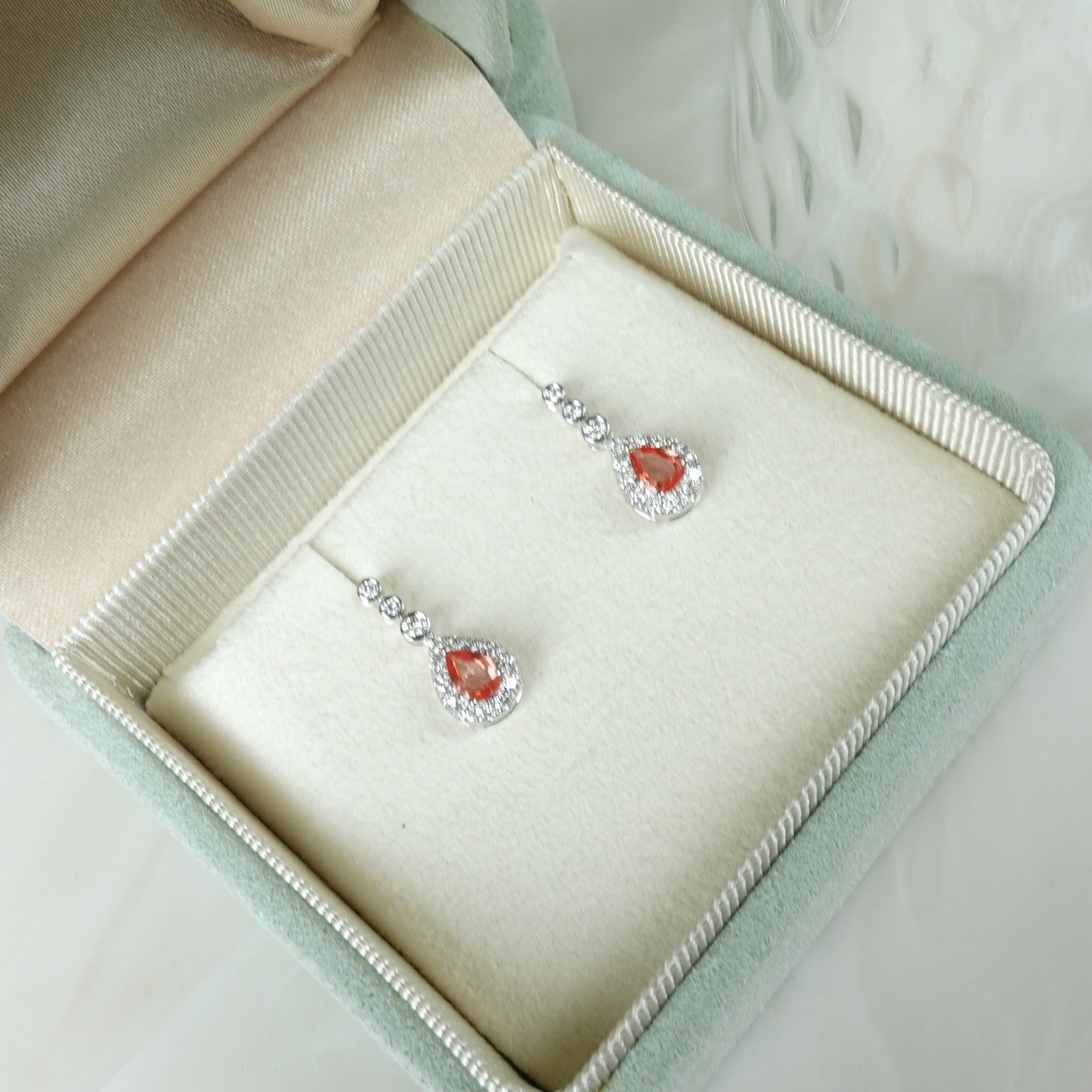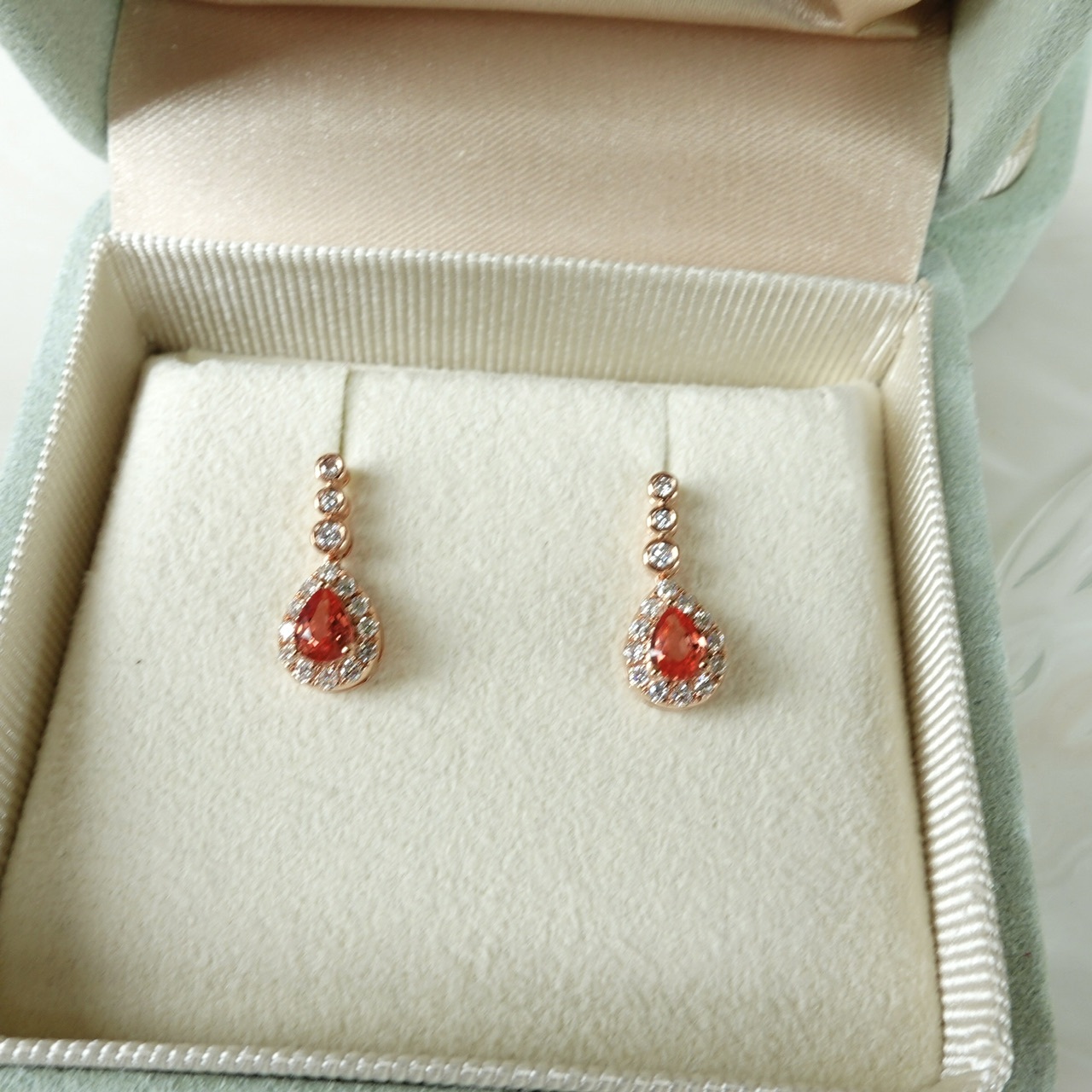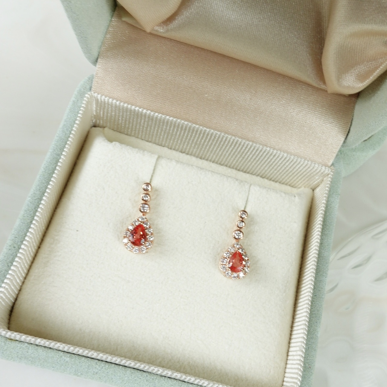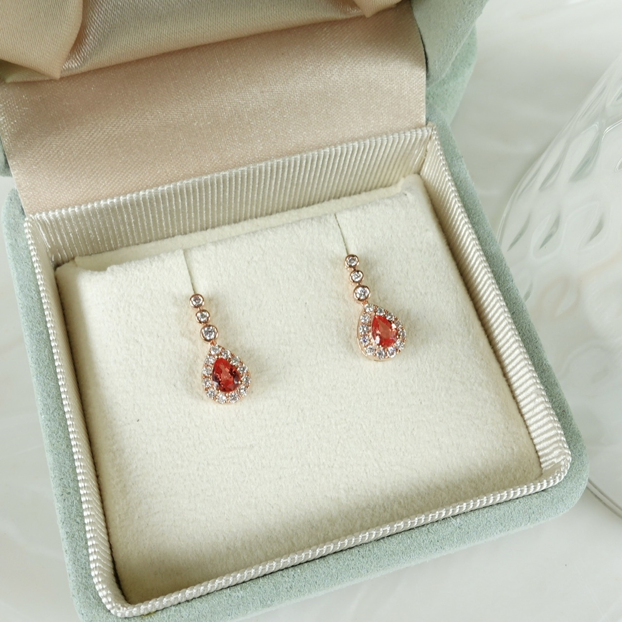 18K金Padparadscha鑽石復古耳釘 - 日落色